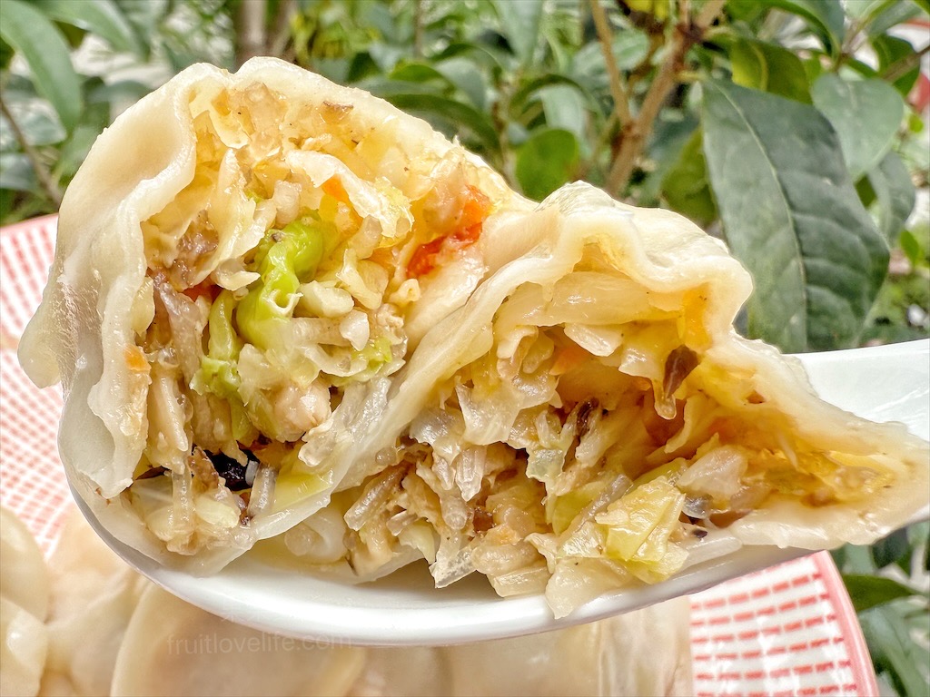 外皮Q軟有彈性,裡面以瘦肉居多,僅有少許的肥肉加在一起,覺得這個餡料拌飯或是拌麵味道也很香。